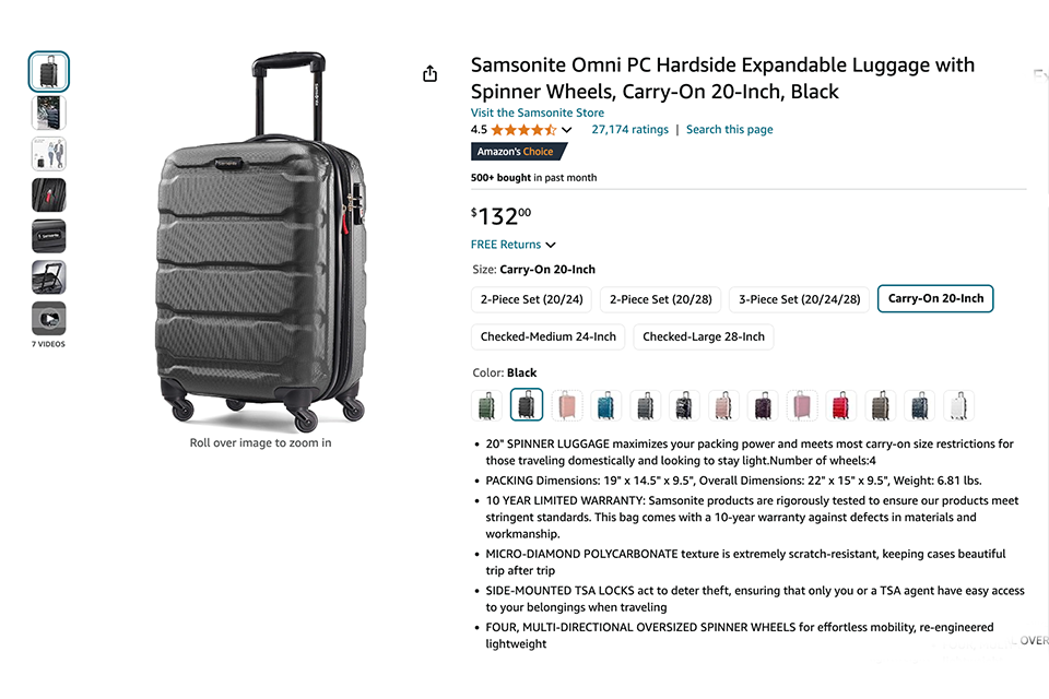Amazon: The AI focuses on incorporating relevant keywords such as "lightweight luggage," "spinner wheels," and "TSA-approved locks" to improve search visibility.